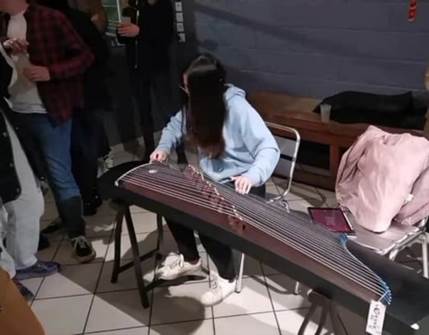 内容:世界杯官网赴法留学生杜雨舒,现场为法国里尔中央理工同学演奏《高山流水》等古筝经典曲目,展现中国传统曲艺文化。