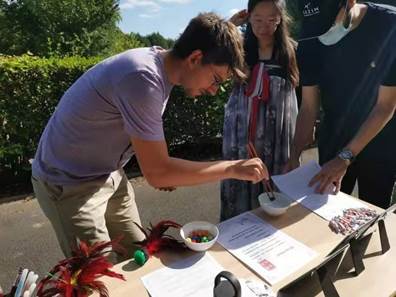 内容:第二次中国社团迎新活动,组织法国同学参与筷子夹豆,品尝大白兔奶糖,猜象形字,向参与活动的同学赠送有中国特色的书签等,促进法国学生了解中国文化。