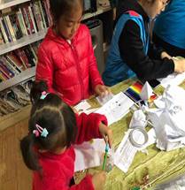 孩子们认真细心的样子打动着志愿者,志愿者们也更加有耐心地帮助可爱的孩子们。