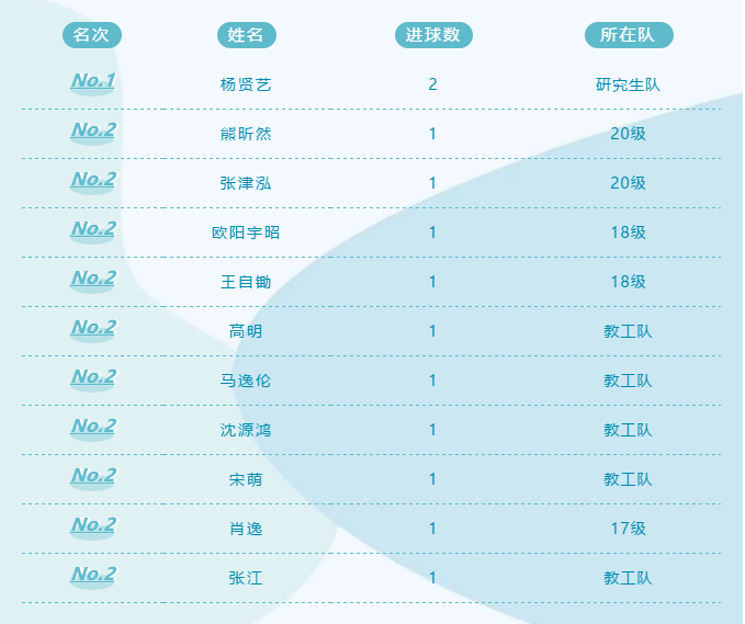 几次威胁进攻后,比赛的最后时刻,20级的攻势终于见效。48分钟,熊昕然,刘锦帅,张津泓三人再次获得前场机会。刘锦帅中路吸引两人防守,熊昕然,张津泓边路前插,寻求机会。刘锦帅晃过一人后向前推进,将球传向对方禁区,被研究生后卫破坏,但后卫解围失误,球阴差阳错来到禁区内前插的张津泓脚下。张津泓调整后,冷静正脚背射门,打入球门死角。