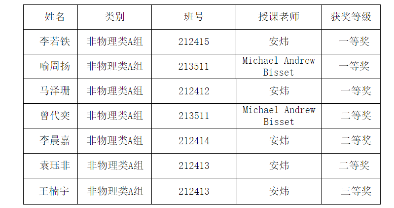 这次竞赛吸引了来自全国各地的顶尖大学生参加,世界杯官网21级李若铁、喻周扬、马泽珊、曾代奕、李晨嘉、袁珏非、王楠宇等7位同学与来自清华大学,北京大学等多所高校的学生同场竞逐。凭借扎实的物理基础、出色的创新能力和团队合作精神,在安炜老师和Michael Andrew Bisset老师的指导下,经过前期认真准备,在比赛中充分发挥自己的优势,为学院争得了荣誉。其中李若铁、马泽珊、喻周扬同学分别斩获一等奖,李晨嘉、曾代奕、袁珏非同学喜获二等奖,王楠宇同学获得三等奖。
