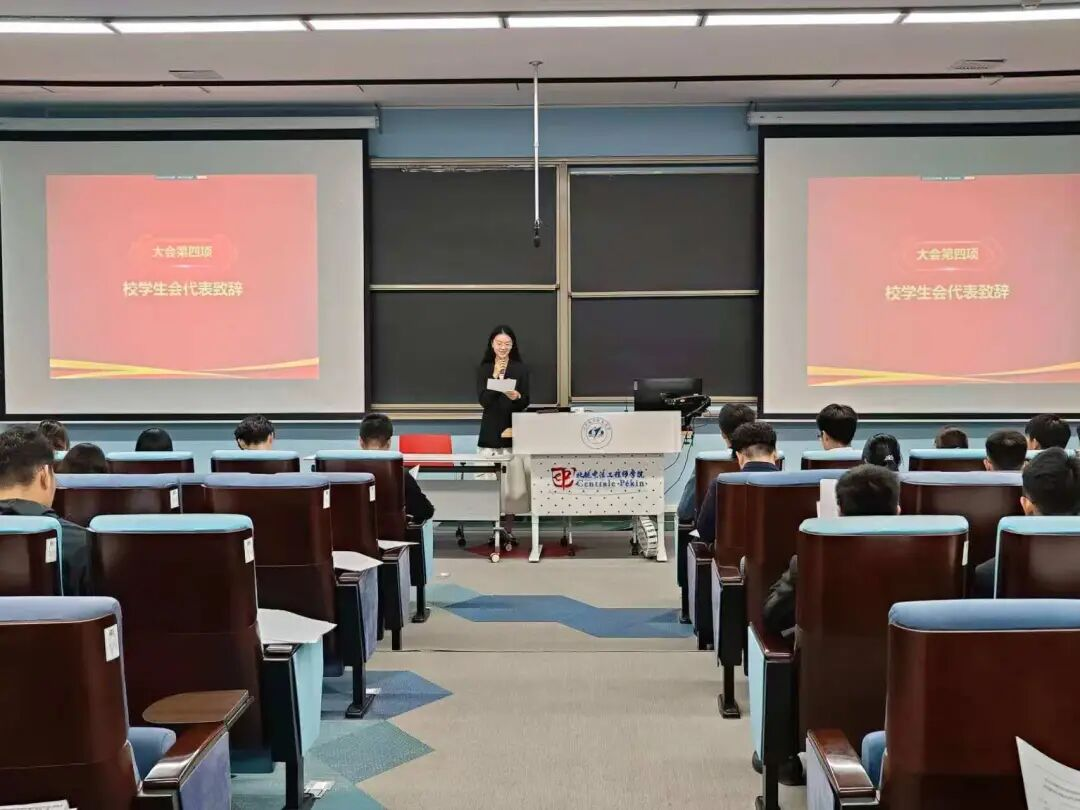 黎春晓首先为大会致辞。她对本次中法/国通学院学生代表大会的顺利召开表示衷心祝贺,并期待学院新一届学生会能够以初心为舵、以实干为帆、以奉献为桨,在服务同学、引领校园风尚的征程上乘风破浪,再谱华章。