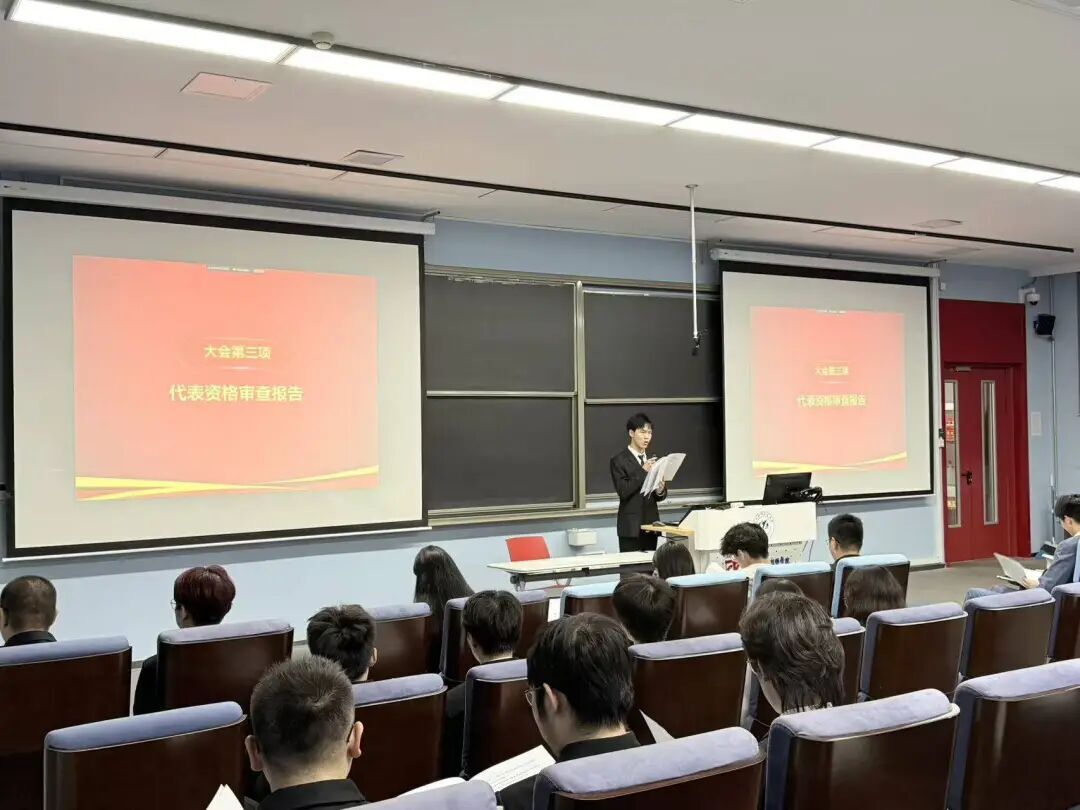 伴随着铿锵有力的国歌声,大会在庄严的气氛中拉开序幕。主持人宣读了本次学生代表大会参会代表的资格审查报告。