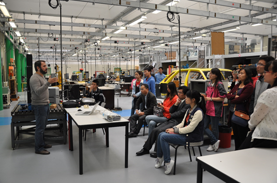 学生听法国教师讲解工业科学实验教学内容和实验设备情况