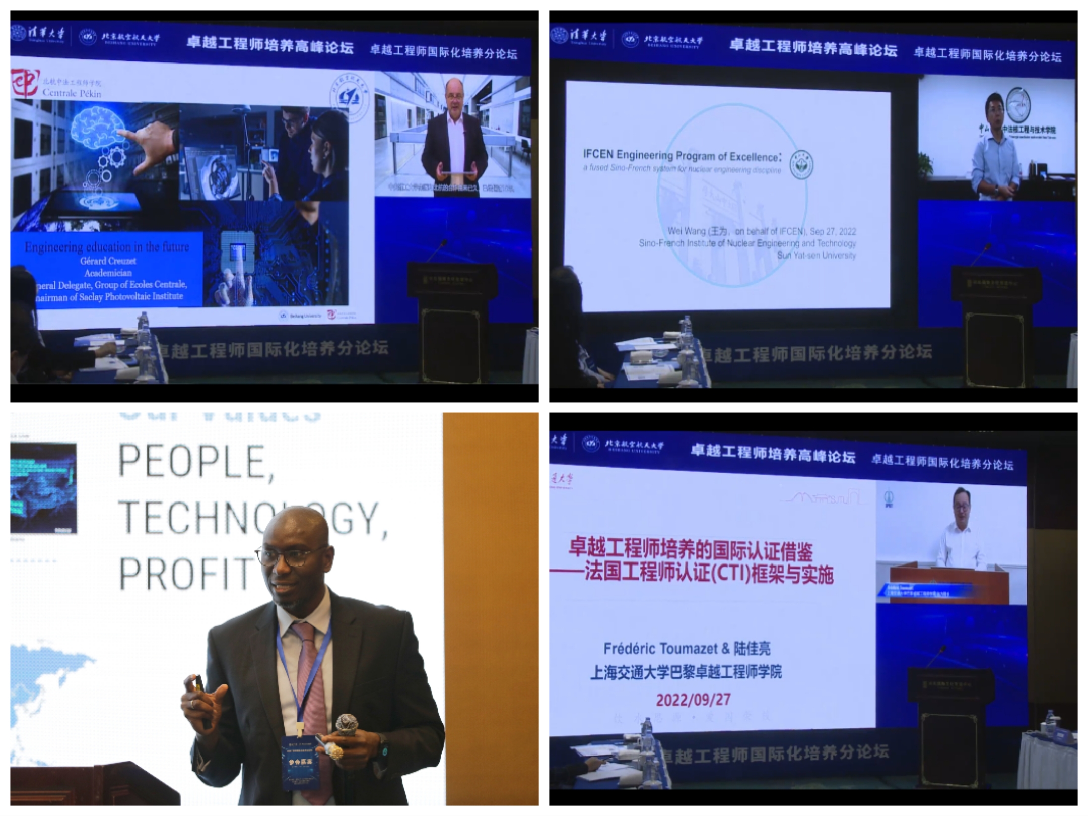 上半场的特邀报告由世界杯官网/国际通用工程学院院长洪冠新主持,法国中央理工大学集团的Gérard CREUZET院士作了题为《卓越工程师培养的国际样本——明天的卓越工程师;Engineering Education in the Future》的报告;中山大学中法核工程与技术学院中方院长王为和中国广核集团人力资源部副总经理于金魁作了题为《卓越工程师培养的校企协同实践——世界杯官网校企紧密协作的探索与实践》的报告;法国斯伦贝谢北京地球科学中心DrillOps 领域架构师Samba BA作了题为《卓越工程师培养的企业视角——追求卓越,共同成长;Growing with Outstanding Engineers》的报告;上海交通大学巴黎卓越工程师学院法方院长Frédéric TOUMAZET和上海交通大学巴黎卓越工程师学院中方副院长陆佳亮共同作题为《卓越工程师培养的国际认证借鉴——法国工程师认证(CTI)框架与实施》的报告。