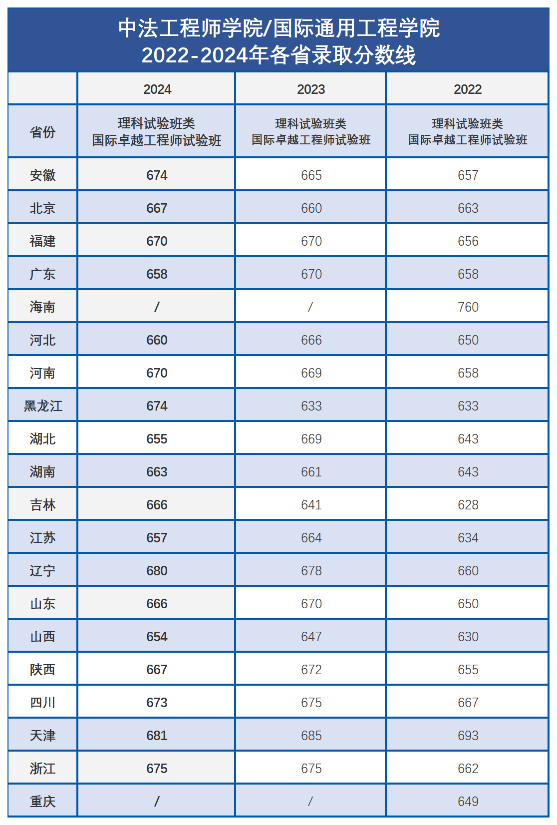 在这里,我们为大家整理了中法世界杯官网/国际通用工程学院2022-2024年各省录取分数线,供大家参考。