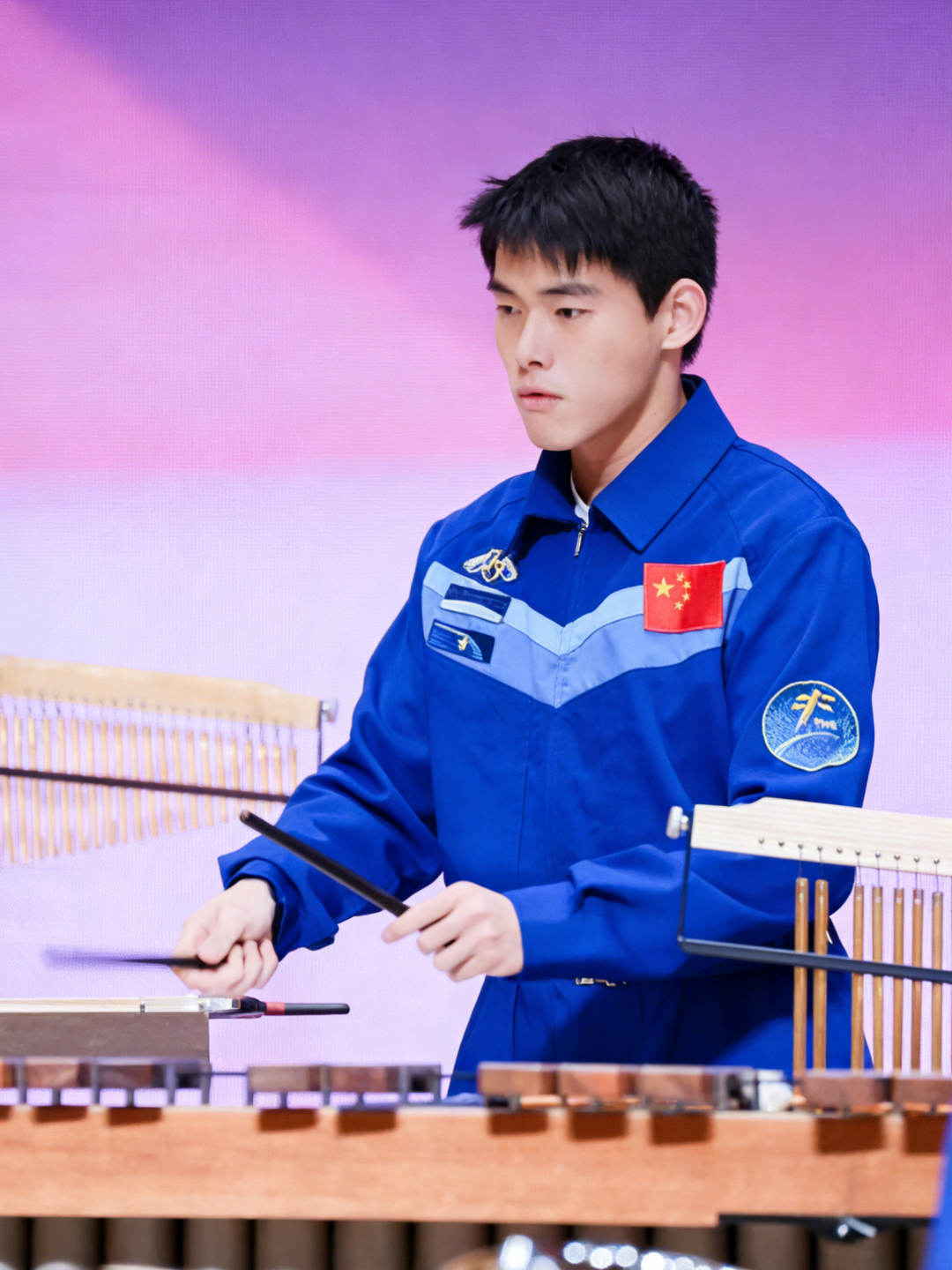 作为校民乐团成员,叶雨坤深度参与打击乐作品《鼓赞东方》的创作与演出。