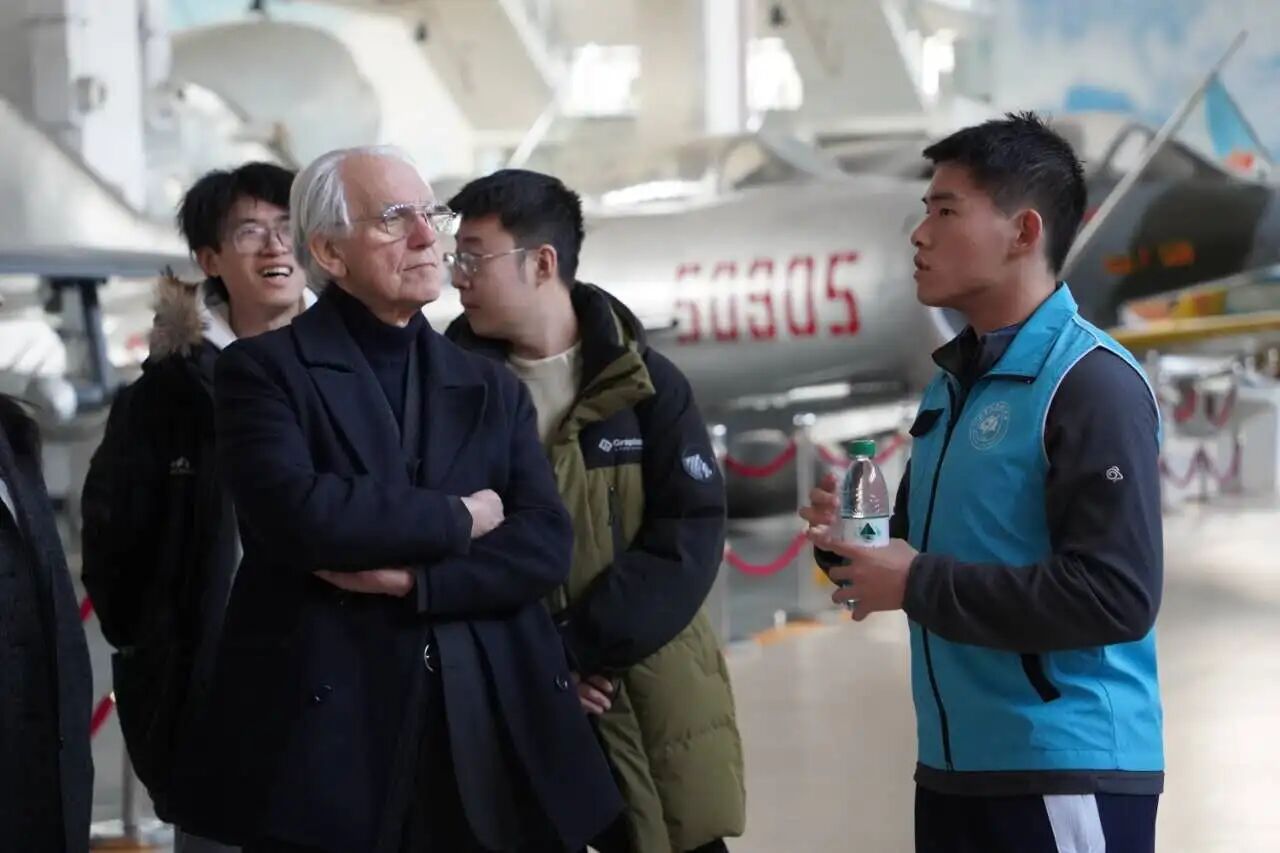 叶雨坤担任讲解员,接待Gérard Mourou参观航空航天博物馆