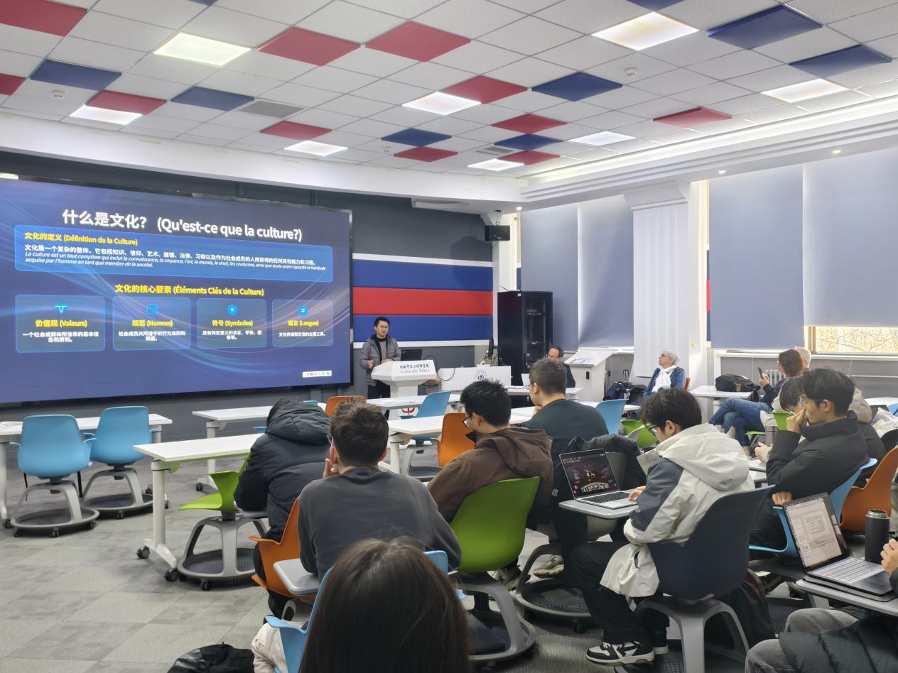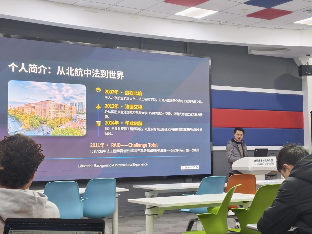 2026年3月20日,北航世界杯官网2007级校友,致真精密仪器有限公司市场营销总监唐忠杰重返校园,以自身职业发展与跨文化交流经历为切入点,在学院路二号教学楼310教室为在校学子带来了一场生动的分享会。他结合多年海外求学、工作经历,深入解读跨文化交流的价值与意义,为学弟学妹们提供了宝贵的成长指引。学院副院长王韫,法方项目管理团队出席论坛。
