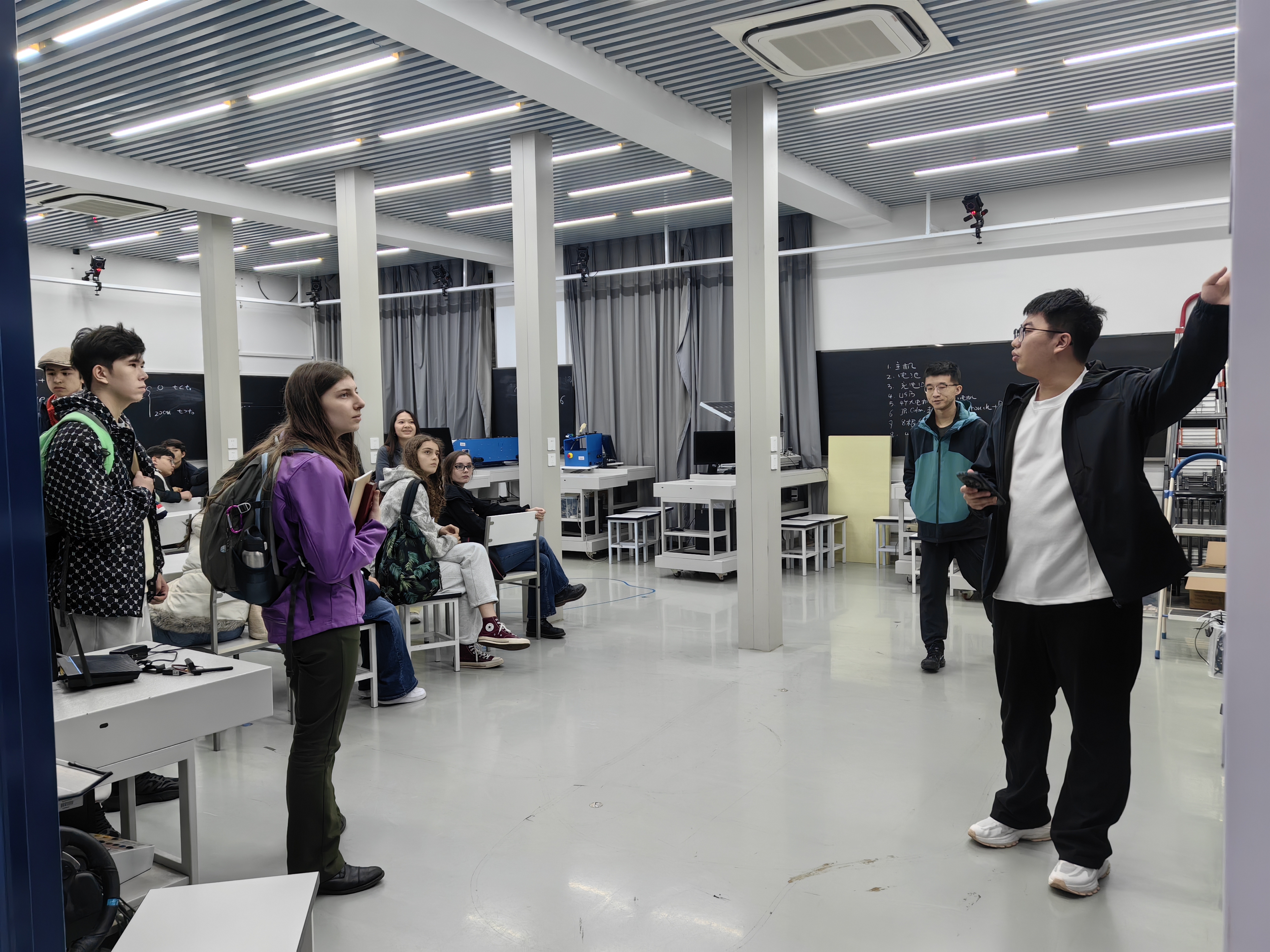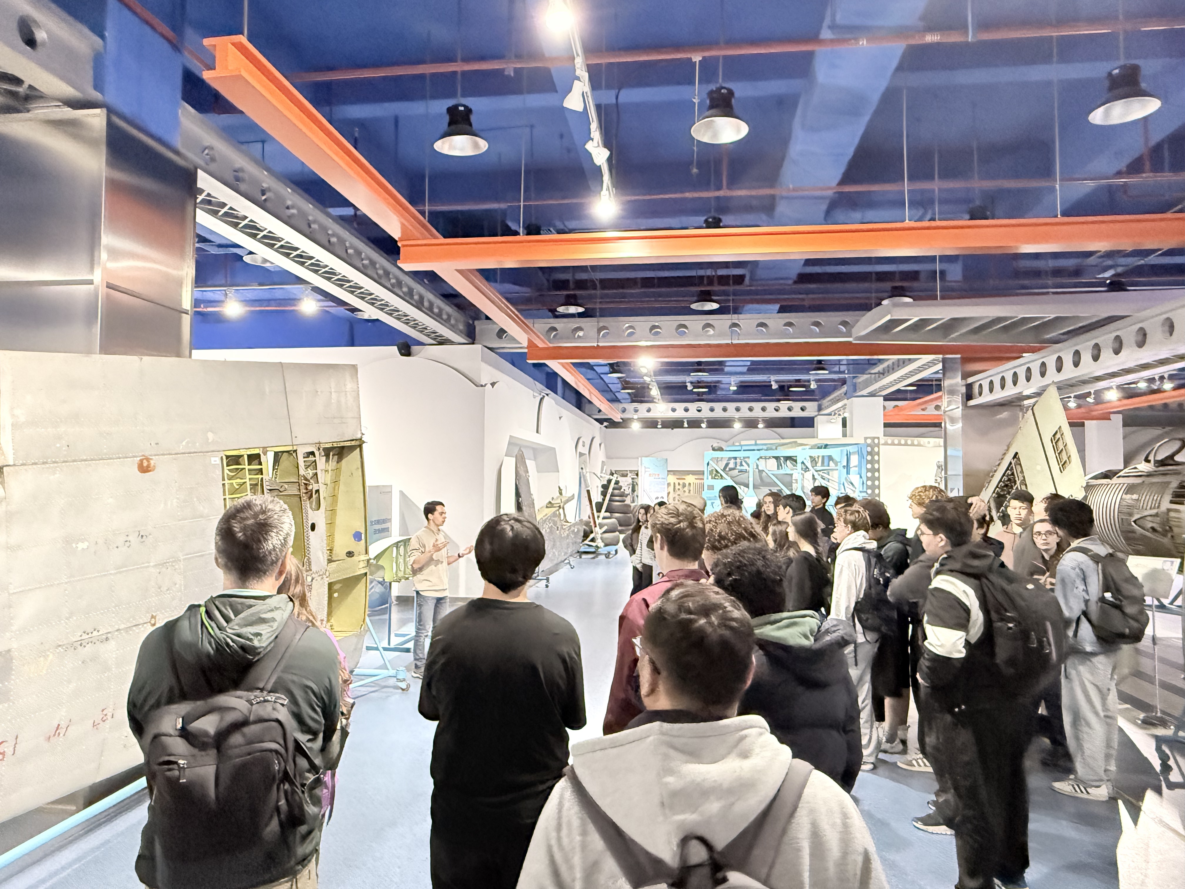 欢迎仪式后,在学生志愿者的讲解下,法国师生走进北京航空航天博物馆,参观了各型飞机与航天器实物,对中国航空航天领域的发展有了直观认识。接着,走进了学院实验室,进一步了解了学院的科研环境和实验条件。