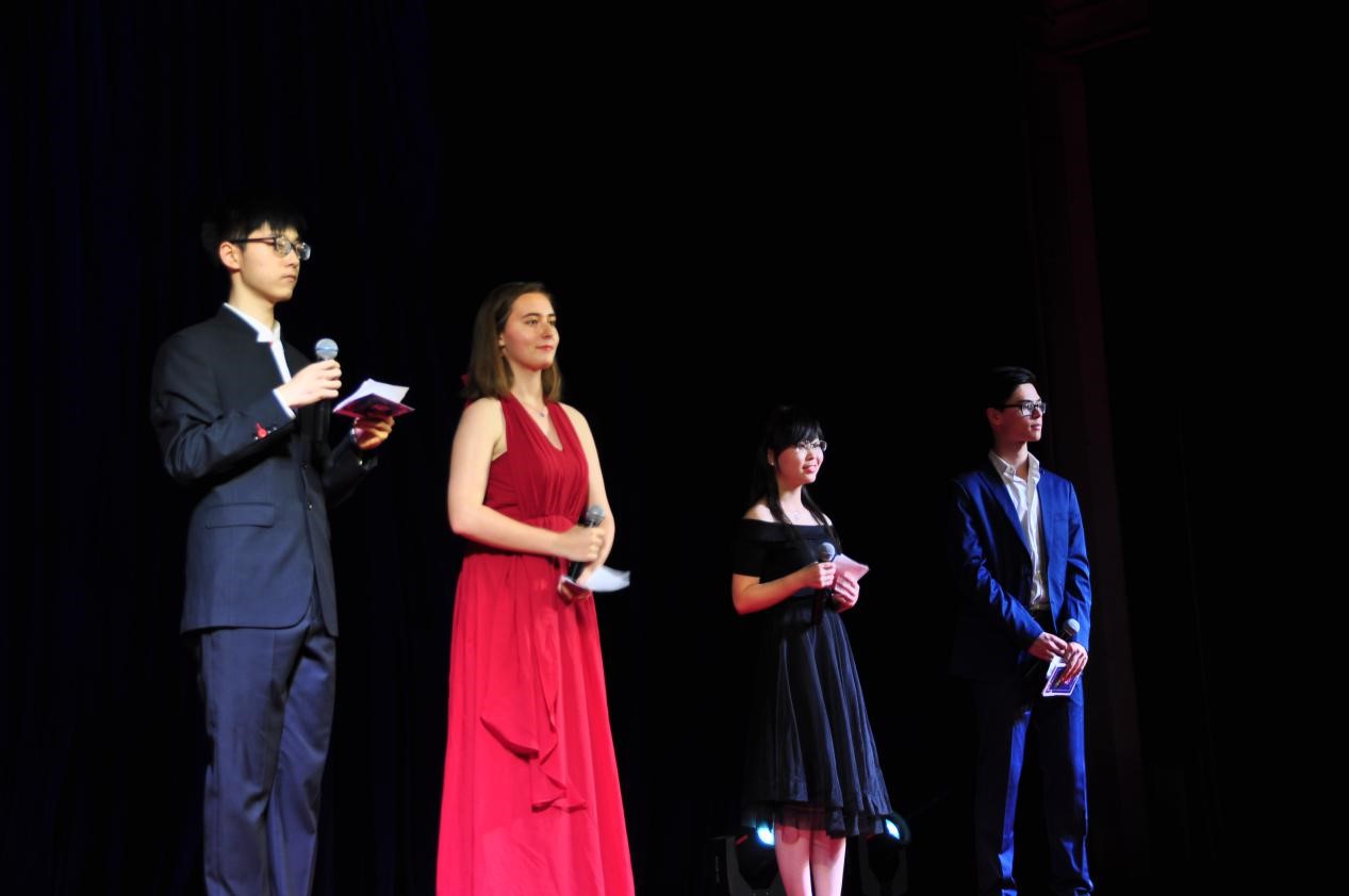 晚七点,在所有观众的期待中,舞台缓缓亮起,五号线乐队以三首歌曲成功暖场。随后播放的开场视频,以蒙太奇的手法全方位展示了中法的生活剪影,令在场同学都别有会心之感。随后主持人宣布晚会开场。本次晚会由中国法国同学进行了中法双语主持,充分体现了中法特色。值得一提的是,本场晚会在映客和B站上进行了同步直播,反响十分热烈。
