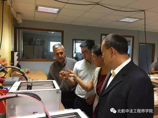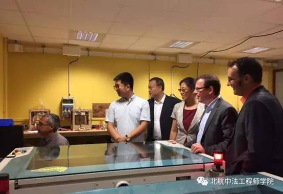 在里昂中央理工大学,洪冠新院长一行受到了校长FrankDebouck教授的热情接待。大学科研副校长、教学副校长详细介绍了里昂中央理工与北航在科研方面的合作情况,并参观了学校的流体、摩擦学实验室,IDEA教学实验室等。代表团成员,校研究生院徐国强副院长,中法联合实验室中方协调人、能源与动力学院陆利鹏教授分别就双学位合作、国际联合实验室LIA的未来发展规划与法方进行了深入探讨。