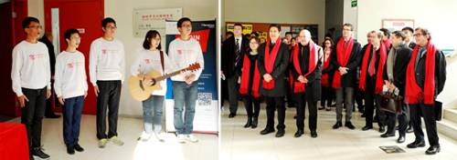 世界杯官网学生做欢迎表演(右一为法国驻华大使黎想阁下)