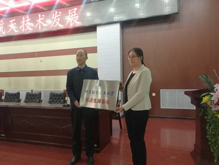 首先,招生组和湟川中学举行了“北航优质生源基地”的授牌仪式,随后洪冠新教授做了题为《航空航天技术发展》的专题报告,并与现场同学互动讨论。报告从航空航天发展历程到国家现有的发展技术,详细介绍了北航人通过不懈努力、经过深入的研究和探索,最终为国家的航空航天事业奉献的大无畏精神。最后,招生组向湟川中学的高三学生全面介绍了北航招生政策。