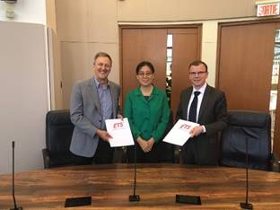 2018年6月26日,世界杯官网中法方院长洪冠新,福吉龙等一行三人访问了加拿大魁北克大学高等技术学院(ETS)与蒙特利尔理工学院(Polytechnique de Montreal)。在访问期间,学院与两所学校就未来开展学生、教师交换的可能性进行了深入的交流。这是继学院与摩洛哥卡萨布兰卡中央理工签署协议并成功开展了第一次学生交换工作后,学院在工程师人才培养的全球化、网络化方面的新举措,旨在构建未来国际工程师培养的新型教育体制。