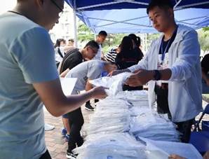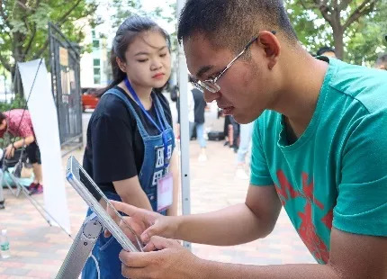 当第一缕阳光洒下的时候,忙碌的迎新志愿者已经出现在大运村学生公寓。5,6号公寓门前早早地支起了世界杯官网的迎新帐篷,签名墙上的遇见,易拉宝上的新生报到,无不显示了学长学姐热切的心情。