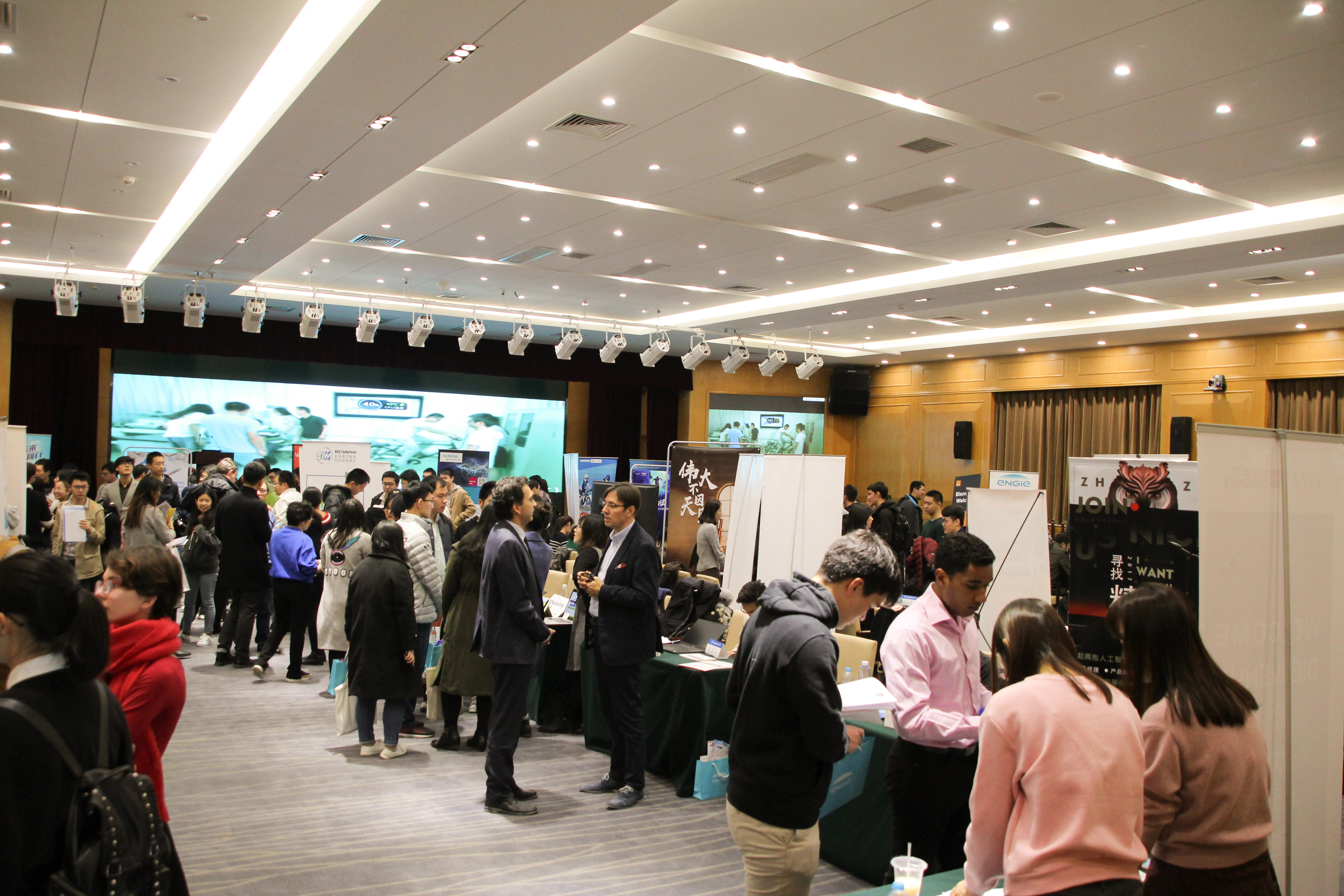 11月24日,世界杯官网第十一届“企业开放日”活动在如心会议中心顺利举行。34家中外企业参加,其中不乏中航国际、华为、赛峰、空客、法国电力、通用电气等国内外知名企业。企业代表学生零距离交流沟通,宣讲企业理念,提供就业或实习机会。