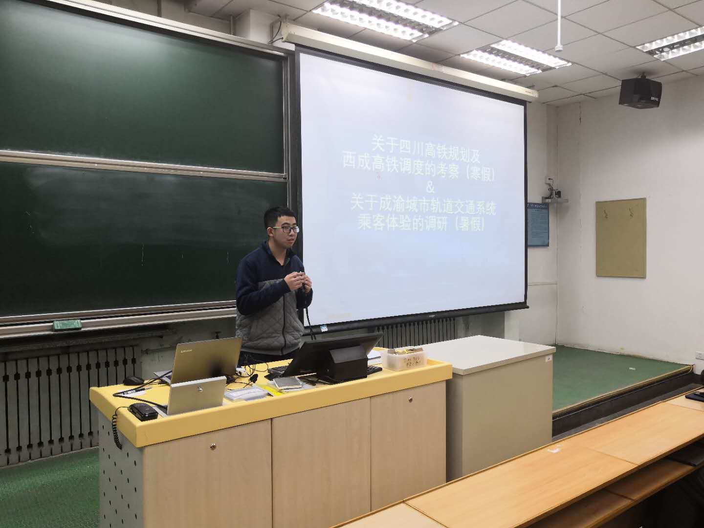 在了解了支教实践后,2018年暑期社会实践三等奖获奖队伍,航轨实践队队长,中法2017级本科生罗宸晟结合社会实践问卷调查、数据分析的方式方法进行了详尽的阐述。通过自己的实践体验,向同学们宣讲了对社会实践意义的见解。并将同学们介绍了航轨实践队过去、现在、未来的展望和规划。