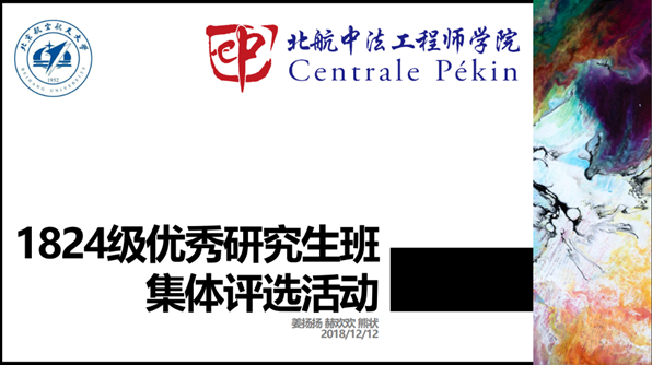 小组评选以答辩的形式进行,于2018年12月12日上午9时30分世界杯官网所在的第一分组答辩会准时在新主楼A849开始。本次答辩准备材料包括:班级工作经验及先进事迹的整理文稿,班级在北航新闻网和学院网站等媒体上关于班集体建设方面新闻稿的发表情况,以及答辩的PPT。答辩由熊状、姜扬扬、赫欢欢三位同学代表18241班集体进行。他们从班级基本情况、班级党团建设、班级活动以及总结展望这四个方面,条理清晰地展示了18241班级的国际化、企业化特色,和团结、奋进、自强的良好班级氛围。