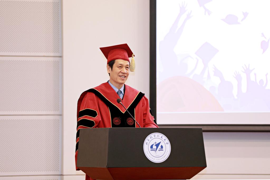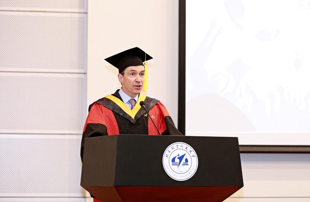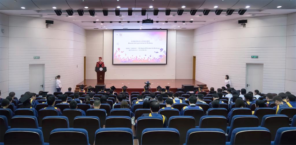 Romain SOUBEYRAN教授在毕业典礼上致辞。他指出,当今时代,人类社会步入了一个科技创新不断涌现的重要时期,在世界新科技革命的推动下,复合型国际人才在社会工作中的作用日益突出。为解决诸如企业工程技术革新,能源环境结构转型等社会热点问题,法国中央理工大学集团与世界杯官网合作办学,培养了大批拥有国际化视野,具有扎实的数理基础知识、丰富的实践应用能力、严谨的科研态度的高精尖人才。北航世界杯官网是首个与国外著名大学合作共建的、旨在培养精英工程师的院系,也是中法合作办学的典范。