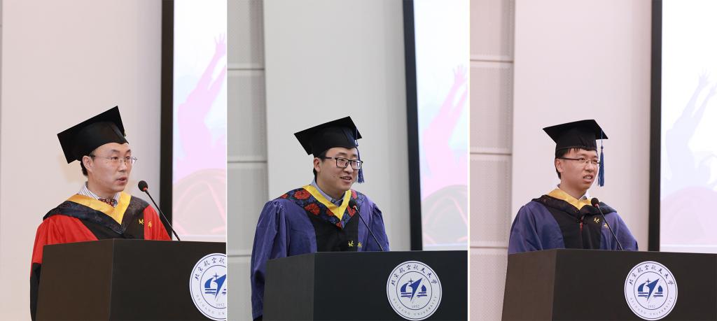 导师代表于雷,毕业生代表蔡文龙、王楚涵先后发言 |