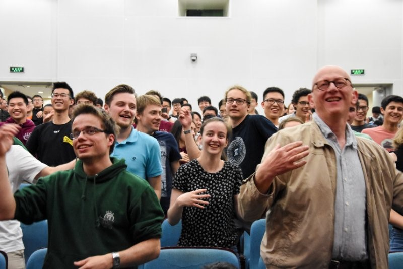 晚会的中场游戏气氛欢快,中法两国同学争先恐后参与互动。所有来自法国参加校园营的同学也都登上舞台,载歌载舞表达兴奋与感激之情。晚会在全场起立共同舞蹈的欢愉氛围里走向尾声。