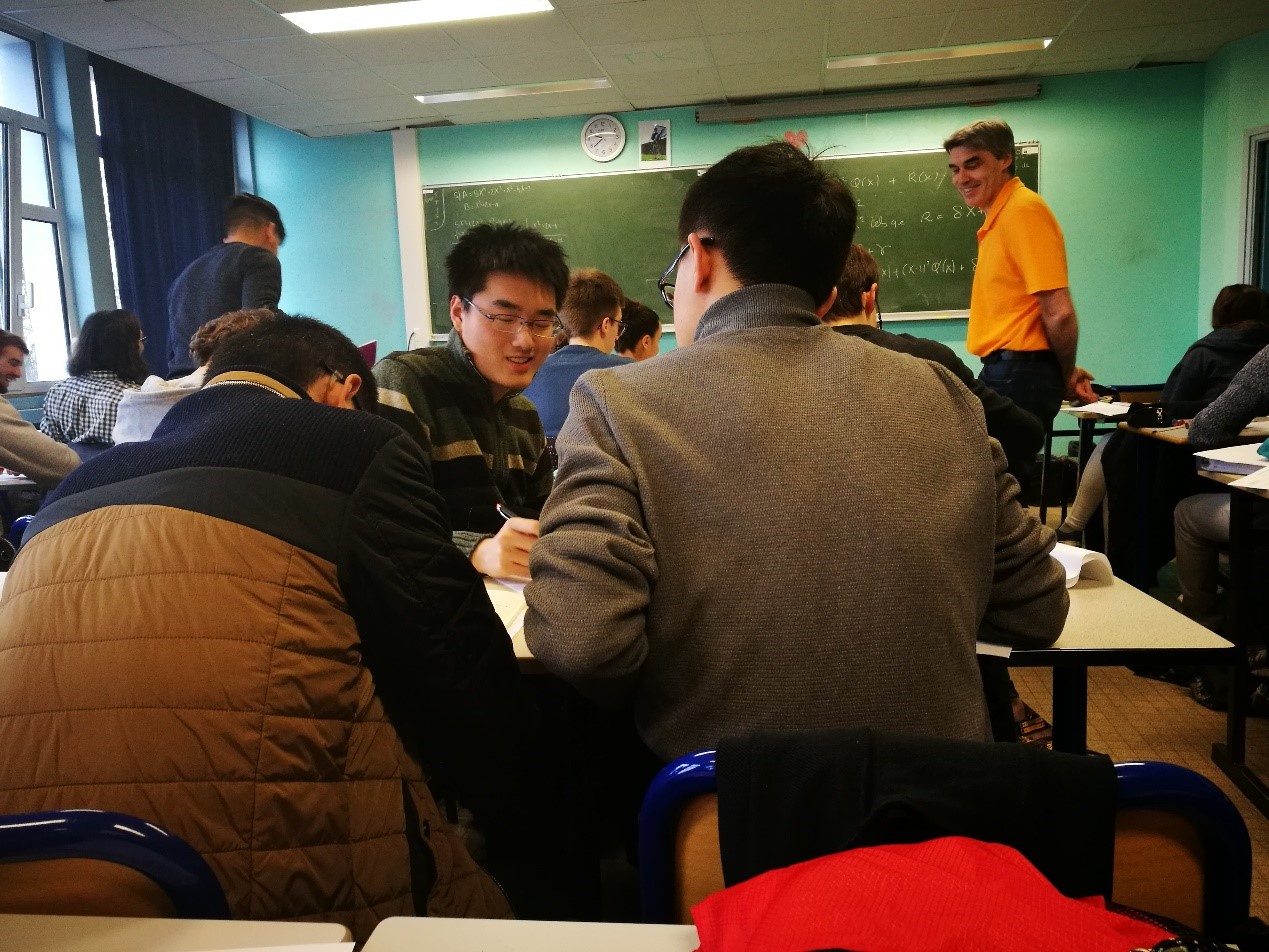 首先在法国,学生没有教材,完全靠上课认真听讲和做笔记,因此课堂的节奏很快。其次,在课堂上,法国的老师与学生之间的互动更多,更深入,课堂的气氛也很活跃,学生在课堂上发言、讨论、甚至上黑板的时间也更多。此外,习题课也是别具一格,整体节奏慢了很多,通常老师会随机抽取一名学生上黑板现场做题,通过一步一步的引导和提示,直至整道题做完为止。习题课上,法国的老师更倾向于单独的指导。由于习题课是现场给题,学生不能在课前进行准备,这也在一定程度是增加了学习强度。