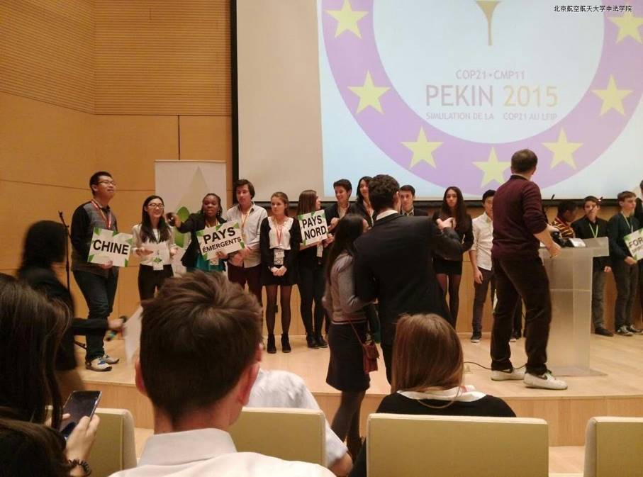 第21届联合国气候变化大会于2015年11月30日至12月11日在巴黎北郊的布尔歇展览中心举行。为了响应这一全球性的重要大会,由北京法国国际学校主办,法国驻华大使馆协办的活动,全球气候大会模拟会议,于2015年12月10日和11日在法国驻华大使馆举行。12月11日,来自世界杯官网的六位同学:安琦、丁硕良、亓琪、王帆、张艺珺、柳君代表中国在会上发表立场、参与辩论。
