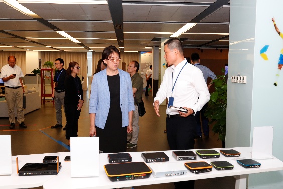 来访嘉宾先后参观了四达时代集团播控中心、译制配音中心、演播厅、研究院等部门。洪院长对四达时代集团在网络建设、节目传输、频道运营、内容开发、非洲市场布局及媒体影响力等方面有了全面认知,并感慨地说,“没想到北京经济技术开发区还有这么一家中非文化交流的领头羊企业。”