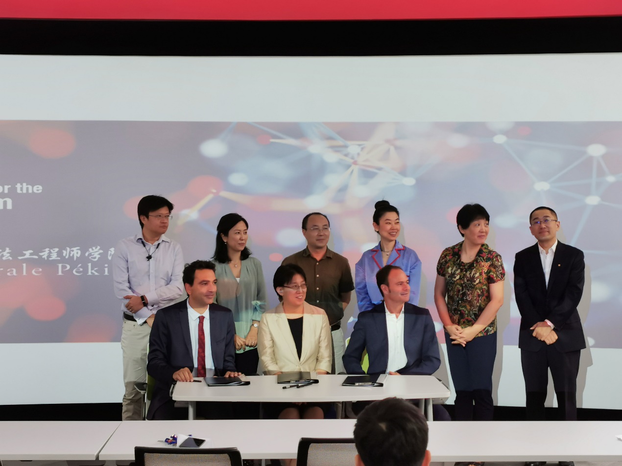 9月12日上午,“世界杯官网与法国电信集团成立联合研究团队协议”签约仪式在世界杯官网隆重举行。北京法国电信研发中心有限公司首席执行官布鲁诺(Bruno GERMAIN)先生携公司各部门负责人代表团6人、世界杯官网院长洪冠新教授、世界杯官网法方院长让蒂(Frederic Genty)教授以及世界杯官网的师生们出席并共同见证。