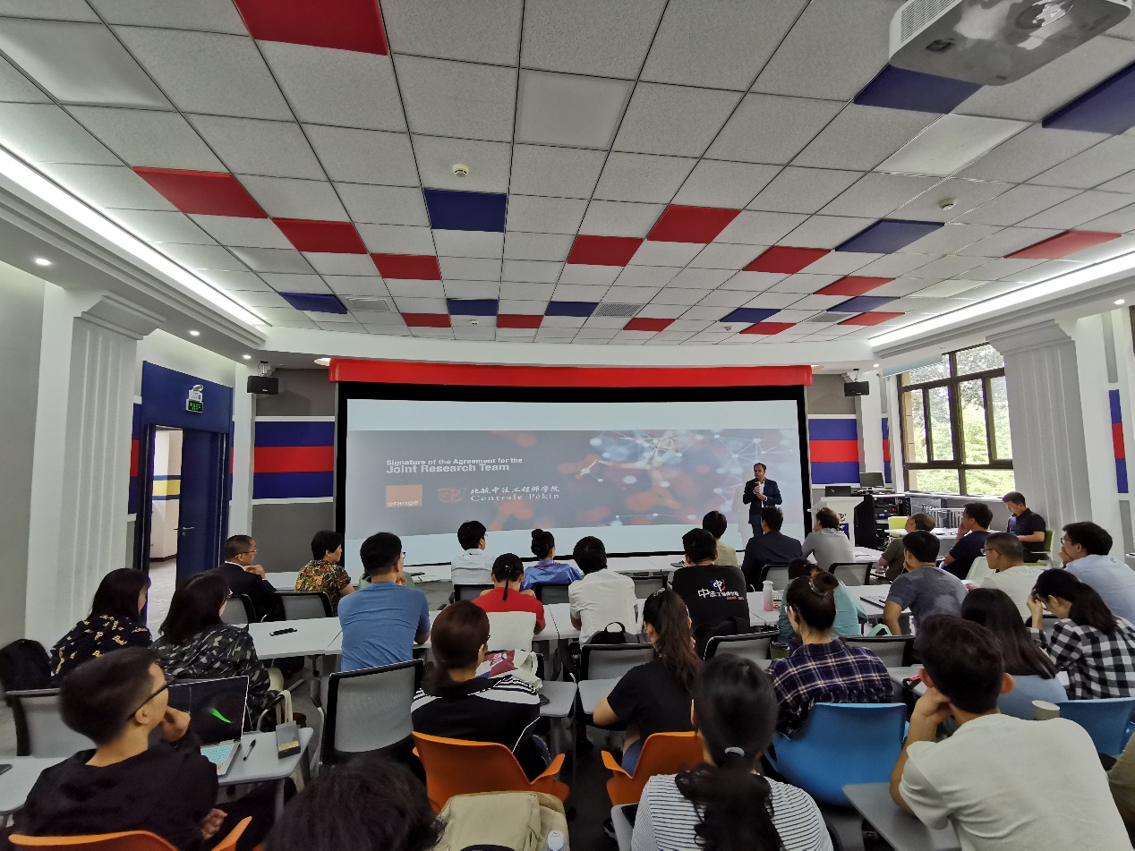 布鲁诺先生对联合研究团队的成立表示祝贺,并介绍了法国电信的发展历史、经营理念与发展方向。北京法国电信网络技术与研究总监王岚女士做了“边缘计算及其应用场景”的学术报告,中法数据科学实验室副主任于雷副教授介绍了中法数据科学实验室的研究情况并对联合研究团队共同实验室的工作流程进行了说明。
