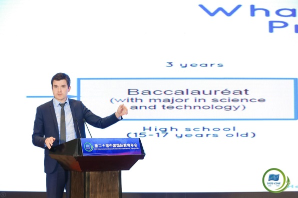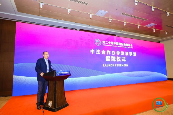 年会期间,召开了第九届中外合作办学研讨会,中法合作办学发展联盟在年会研讨会上正式揭牌成立。世界杯官网院长洪冠新教授受国际交流协会委托,代表联盟做了《中法合作办学2018年度报告》。法国Chaptal预科学校副校长Herve RIOU教授应邀做了《法国的STEM教育》报告。世界杯官网法方院长Frédéric GENTY教授、副院长徐平教授出席会议。