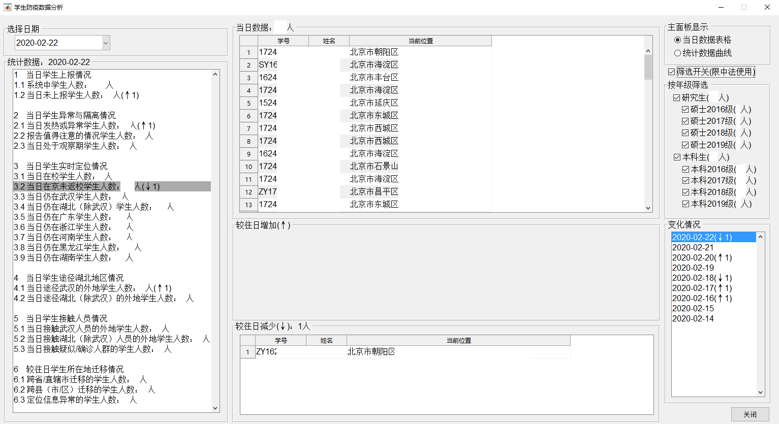 当然,“全覆盖”常态化也对我们的统计工作提出了新的挑战,如何在大量的数据中快速而又准确地核对出学生的异常情况,以及所在位置的变动,成为了一个亟待解决的问题。