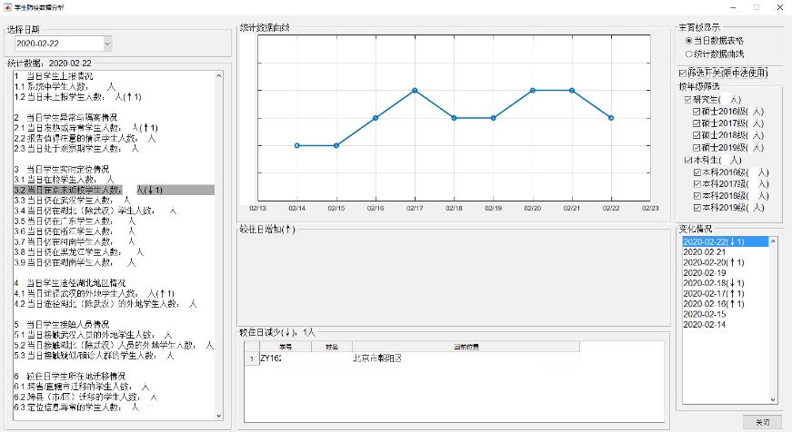 为了能够精准战“疫”,自2月8日“疫情防控通”小程序基本稳定开始,历时5日,经过4版修改,我完成了一款能够分析学生异动情况和数据变化趋势的程序,为世界杯官网在精准战“疫”的道路上领先一步。