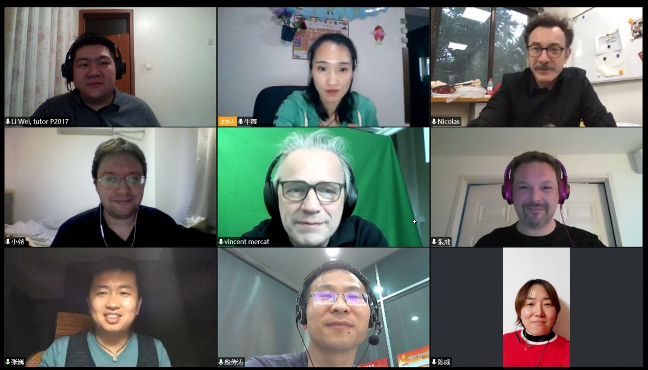 温凯奥:虽然因为疫情的原因使得线下面试难以进行,但中法的老师以及团队克服种种困难依然很顺利地举行了面试:法国老师们在异国,克服时差带来的困难,坚持参加面试,而中方老师也积极组织,最终使得面试如期举办。我觉得这次面试的顺利进行和老师们的辛苦是分不开的,非常感谢老师们一整个下午甚至很多天来的努力。