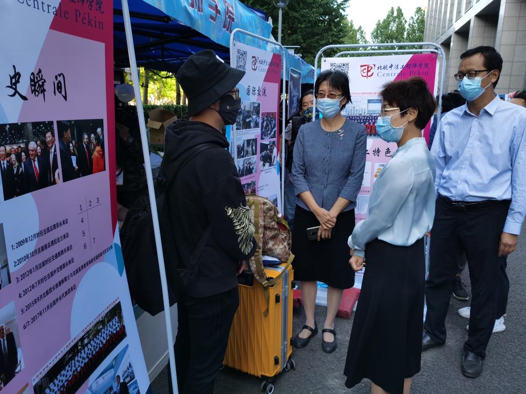 世界杯官网院长洪冠新、党委书记张江、党委副书记李牧为曹淑敏书记做了详细的介绍——印有中法LOGO的文化衫、中法双语的《中国共产党章程》。尤其是双语《中国共产党章程》引起了曹书记浓厚的兴趣。通过阅读中法双语的党章,学生们不仅加深了对中国共产党的认识,而且夯实法语语言能力。曹书记对这份别出心裁的新生“礼物”表示称赞。