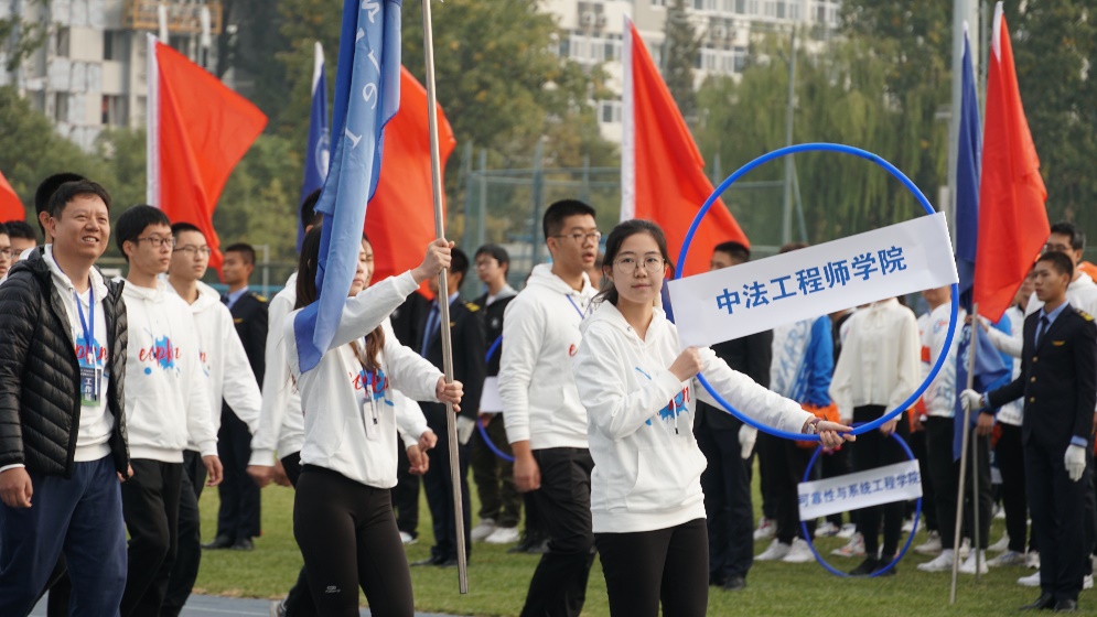 各学院入场完毕后,运动会正式开始。在领队和教练的带领下,运动员们有序检阅,公平竞赛。此次校运会中法人相互加油鼓励,手挽手一齐向前,心与心更加靠近,同学们全力以赴的拼搏精神在场上场下得到传承。