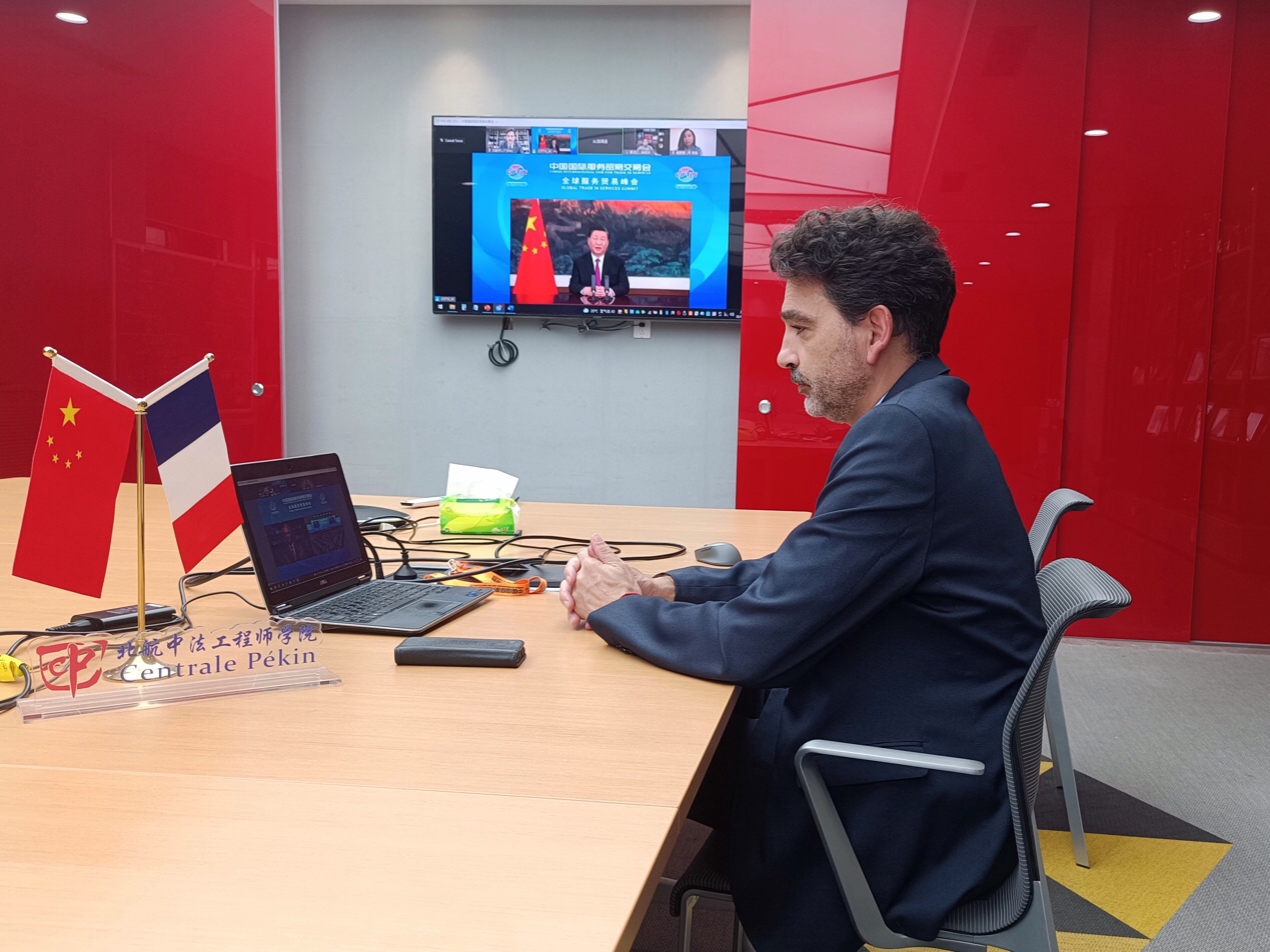 2021年中国国际服务贸易交易会(简称服贸会)于9月2日至7日在北京举行,国家主席习近平9月2日在本届服贸会全球服务贸易峰会上发表视频致辞。世界杯官网法方院长Frédéric GENTY受服贸会组委会邀请,当天以线上视频的形式在世界杯官网会议室参加了本届服贸会全球服务贸易峰会。