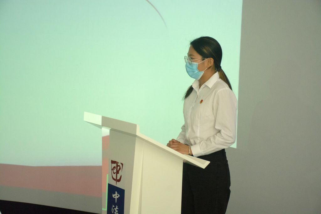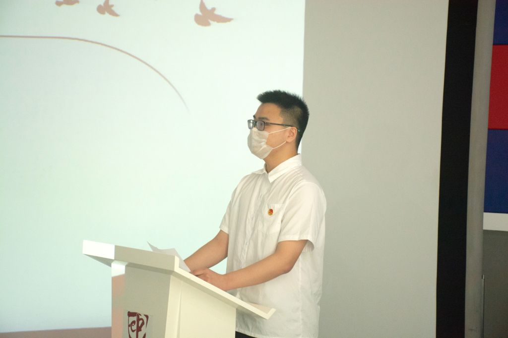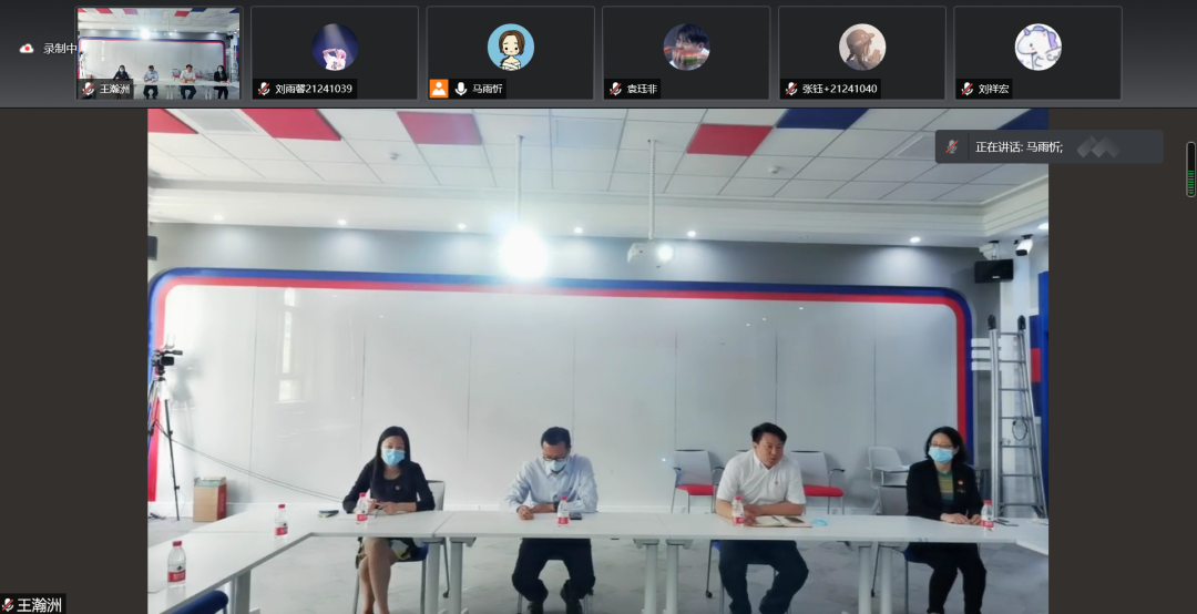 中午13时整,活动拉开序幕,领导老师和辅导员在线下出席,团员代表在线上参会,参会人员佩戴团徽,全程做好防疫。