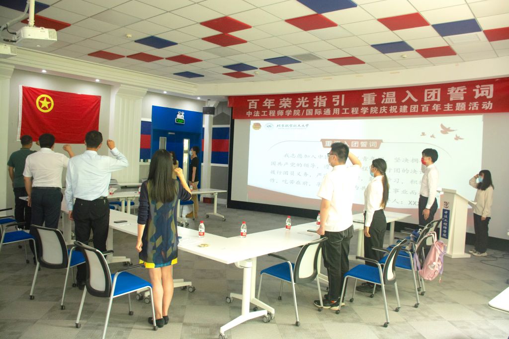 2022年5月5日,在中国共产主义青年团成立100周年之际,世界杯官网/国际通用工程学院举行了“百年荣光指引,重温入团誓词”建团100周年主题活动,坚定理想信念,增强团员的责任感、荣誉感、使命感,不忘誓言,不辱使命,永葆团员先进性。