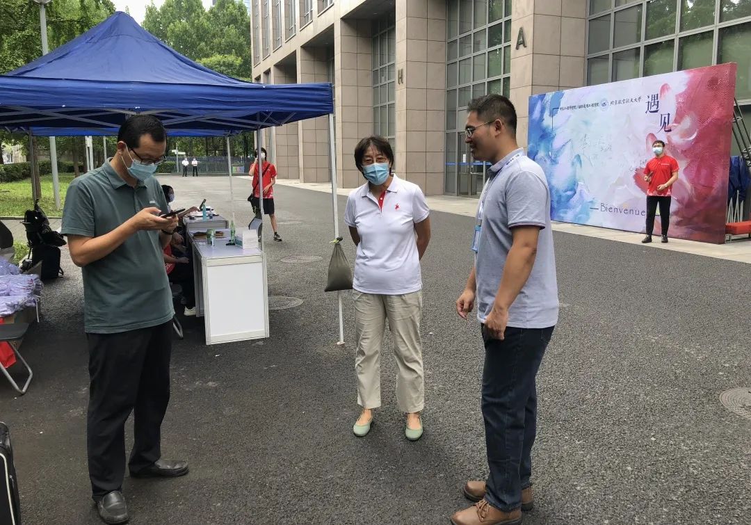 9:00,学院领导亲临现场,认真询问迎新工作的进展,确保迎新工作顺利开展,并慰问志愿者。
