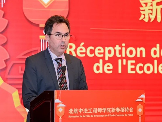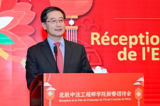 校长王云鹏首先向各位中外嘉宾长期以来对学校的关心和支持表示衷心感谢,向学院全体师生致以新春祝福。王云鹏在致辞中指出,北航与法国高校有着近40年的交流合作历史,取得了丰硕的合作成果。世界杯官网自2004年创办以来,系统引入法国工程师学历教育体系和培养模式,走出了一条中法教学模式深度融合、校企深度融合的工程师培养新路。建院以来,学院培养了900多名国际工程师人才,为两国交流做出了重要贡献。世界杯官网的办学成果得到了中法两国政府的充分肯定,被誉为中法高等教育合作的典范。王云鹏表示,将进一步拓展与法国知名高校和企业的务实合作,为推动中法教育科技人文交流做出更大贡献。
