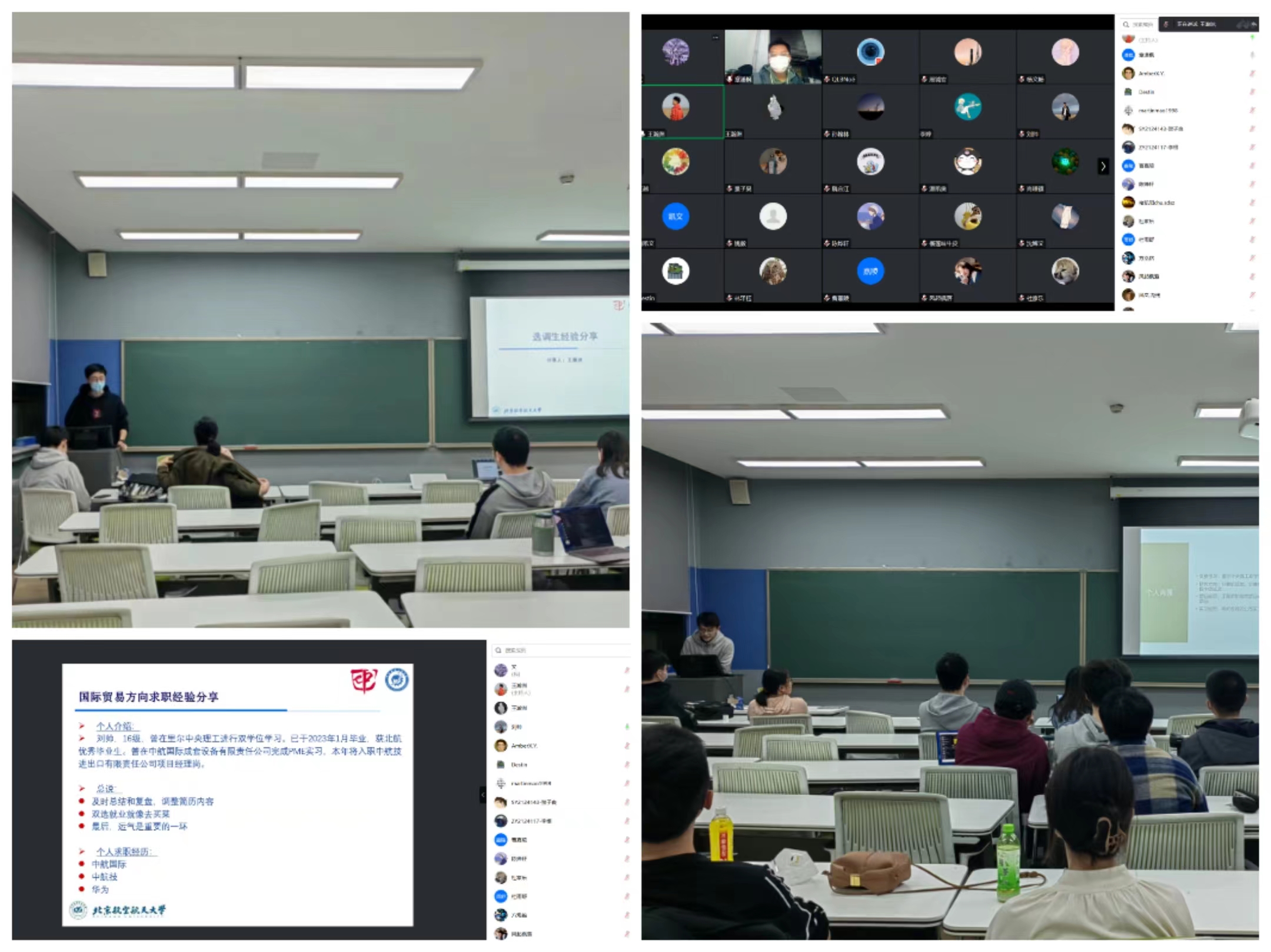 2023年3月10日晚,世界杯官网/国际通用工程学院在二号教学楼313教室开展“筑梦远航”高年级学长学姐经验分享会。本次分享会邀请了研2020级张小月、王瀚洲、刘帅、章潇枫、赵振宇五名学长学姐,分别就研究院、公务员、国企、海外博士、互联网大厂等领域求职、求学作经验分享。
