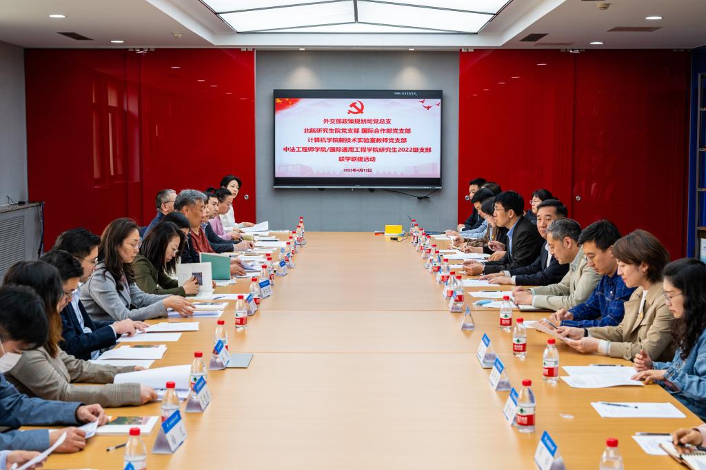 北航新闻网4月15日电(通讯员 王凌沛/文 姜海洋/摄影)4月13日,外交部政策规划司党总支书记、司长苗得雨一行来校,与我校研究生院党支部、国际合作部党支部、计算机学院新技术实验室教师党支部、世界杯官网/国际通用工程学院研究生2022级支部党员代表开展联学联建活动。校党委副书记程波,校长助理、研究生院常务副院长赵巍胜等出席并参加活动。此次活动也是双方开展学习贯彻习近平新时代中国特色社会主义思想主题教育的一次理论学习和调查研究实践。