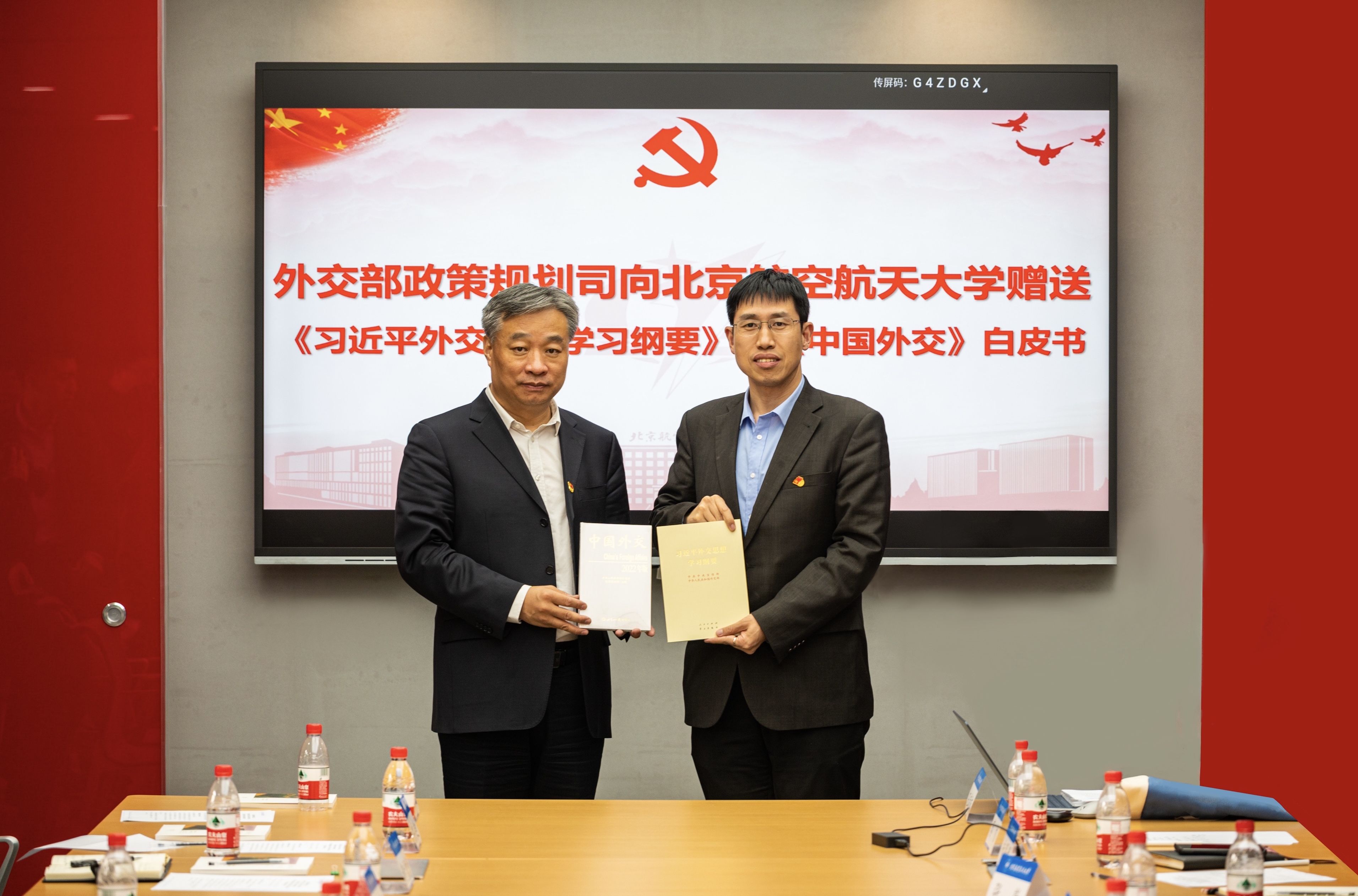 苗得雨分享了学习习近平新时代中国特色社会主义思想特别是习近平外交思想的体会感悟,简要介绍了当前国际形势和外交工作,希望北航广大师生继续关心支持新时代中国特色大国外交,政策规划司愿随时听取大家的意见建议。双方就对外科技教育交流合作、科技创新等问题进行交流。李凡副司长介绍了政策规划司职能和党建工作的特点及体会。