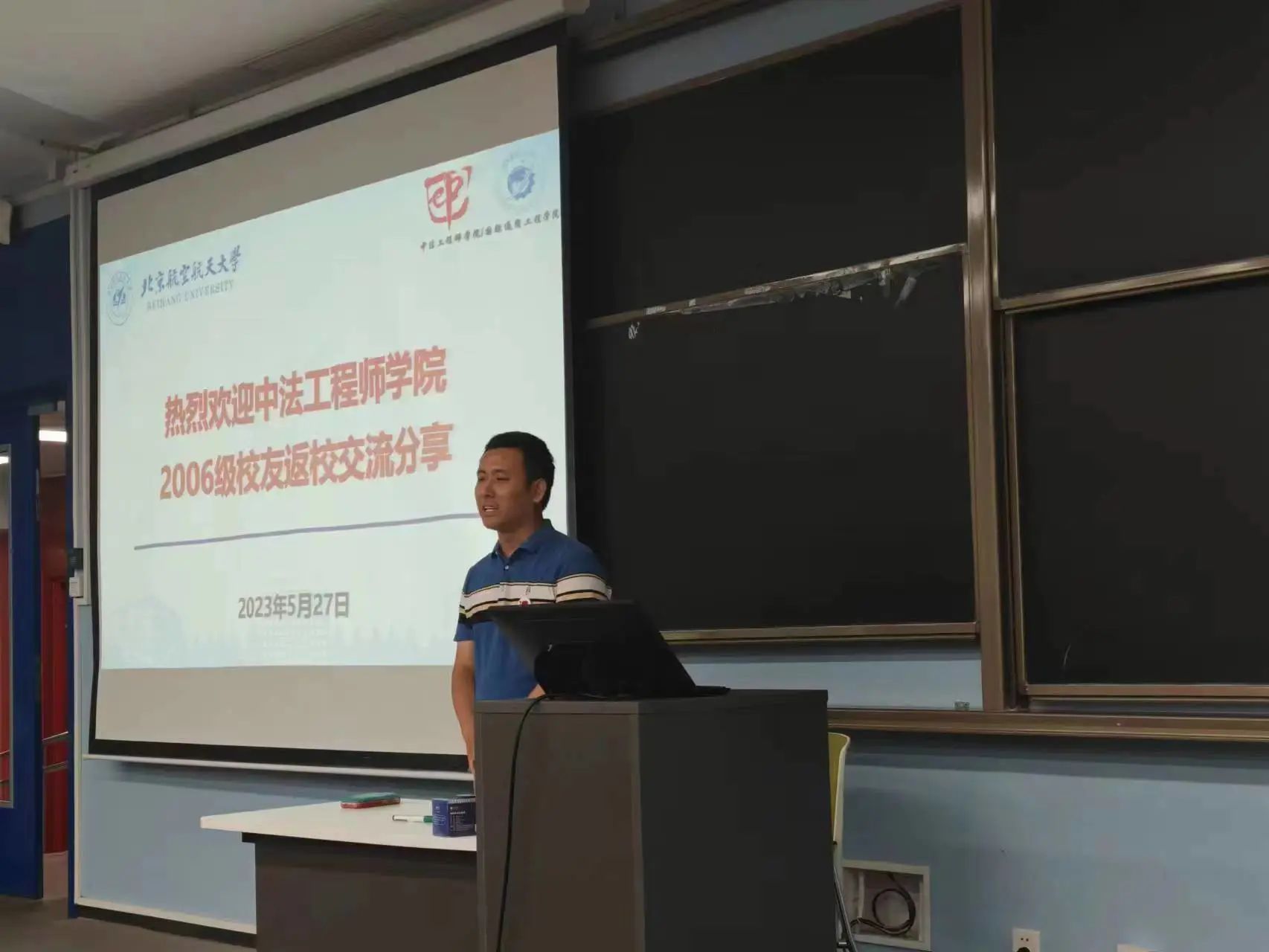 参观结束后,部分校友代表来到二号楼309与在校生开展座谈交流。交流嘉宾包括世界杯官网/国际通用工程学院教师黄行蓉、中国空间技术研究院通信与导航总体部某研究室副主任王兴龙、范德兰德自动化系统有限公司项目经理李佳宾、壁仞科技架构师于占乐、京东集团商业分析师张庶、赛峰集团运营经理刘牧原等来自各个行业的杰出校友。他们分享了在中法学院求学的求学时光和从业情况,为学弟学妹们答疑解惑、指点迷津。学院本科生就专业选择,如何提升自身专业能力等多方面问题与学长学姐进行了交流,纷纷表示收获良多,对未来职业规划有了更深的了解。