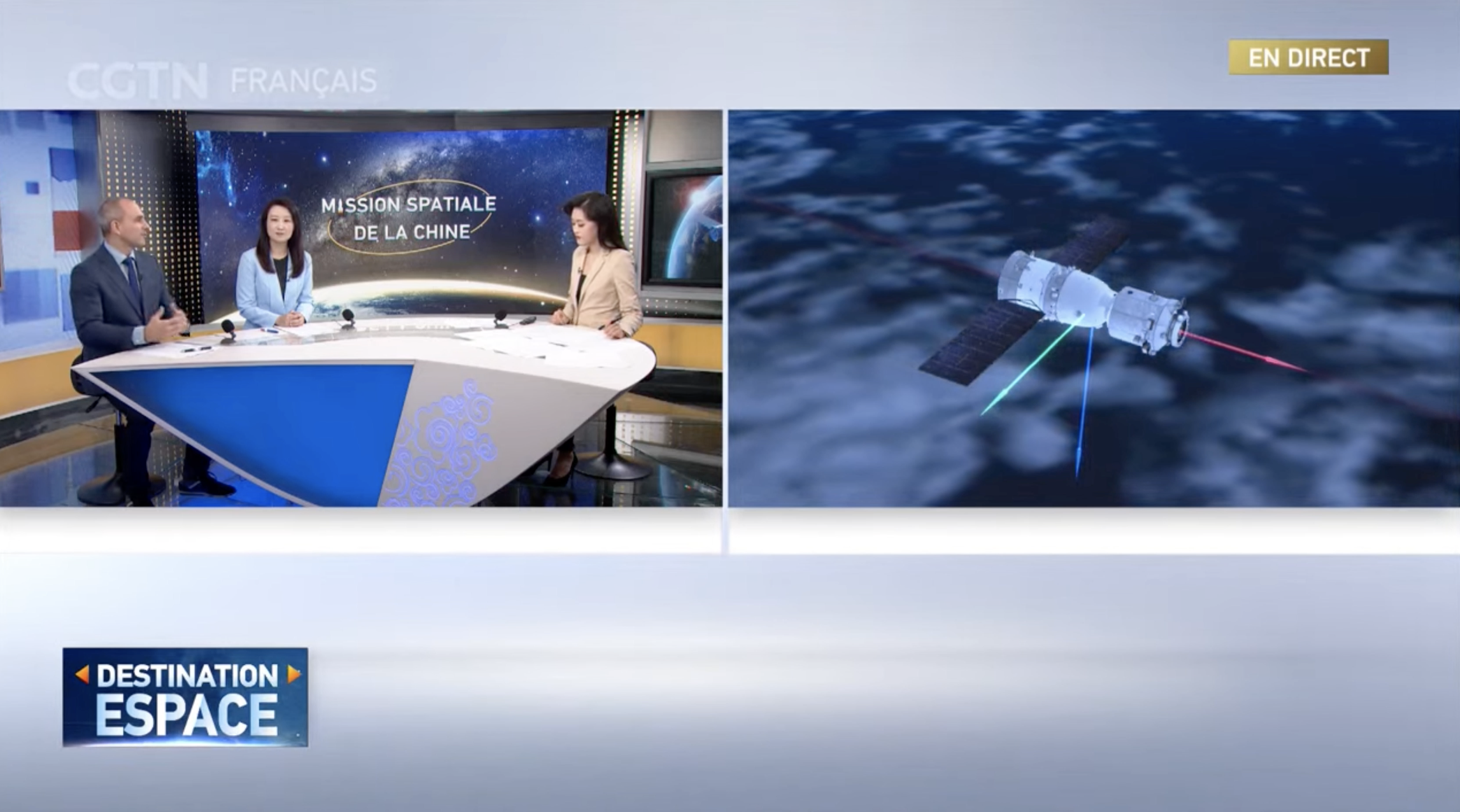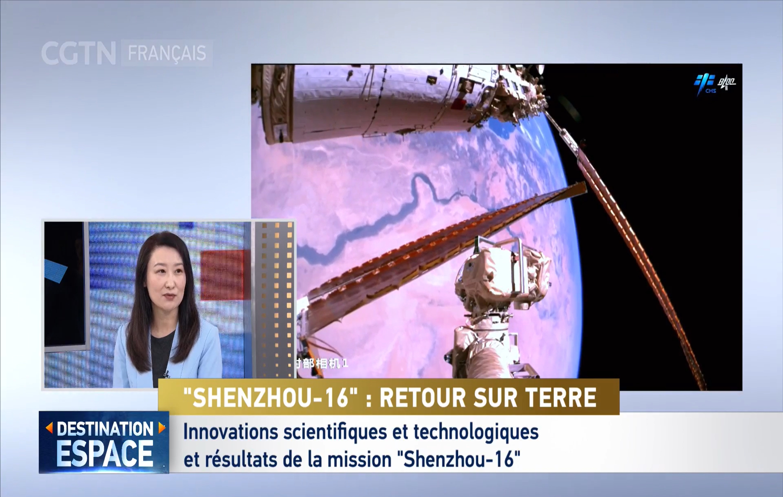 10月31日CGTN“神舟十六号飞船返回地球”直播特别节目在中国国家广播电视台法语频道播出,世界杯官网/国际通用工程学院萨日娜老师作为特邀嘉宾参与直播并接受采访。