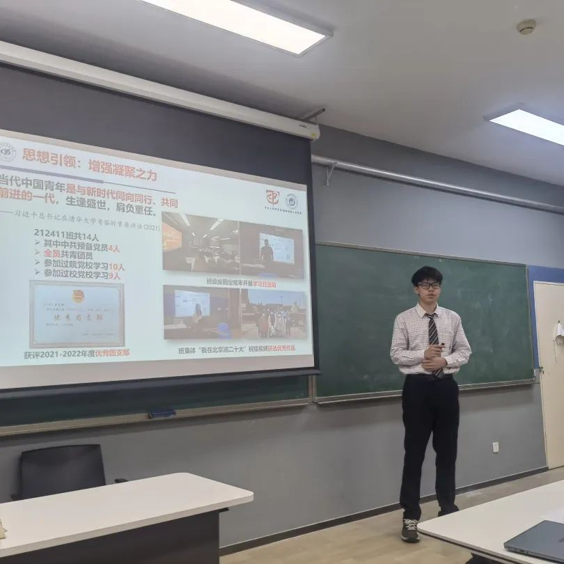 徐高楠在答辩现场肯定了各班在思想引领、学风建设、社会工作、体育强身等领域的出色表现和班干部为班级建设工作做出的贡献。他表示,先进班集体的评选是为了交流经验、宣传典型、充分发挥班集体在促进同学们全面发展过程中的引领作用,各班要进一步提升班级凝聚力,总结经验,以良好班风促优良学风,带动班级同学们团结一心、积极进取、全面发展。