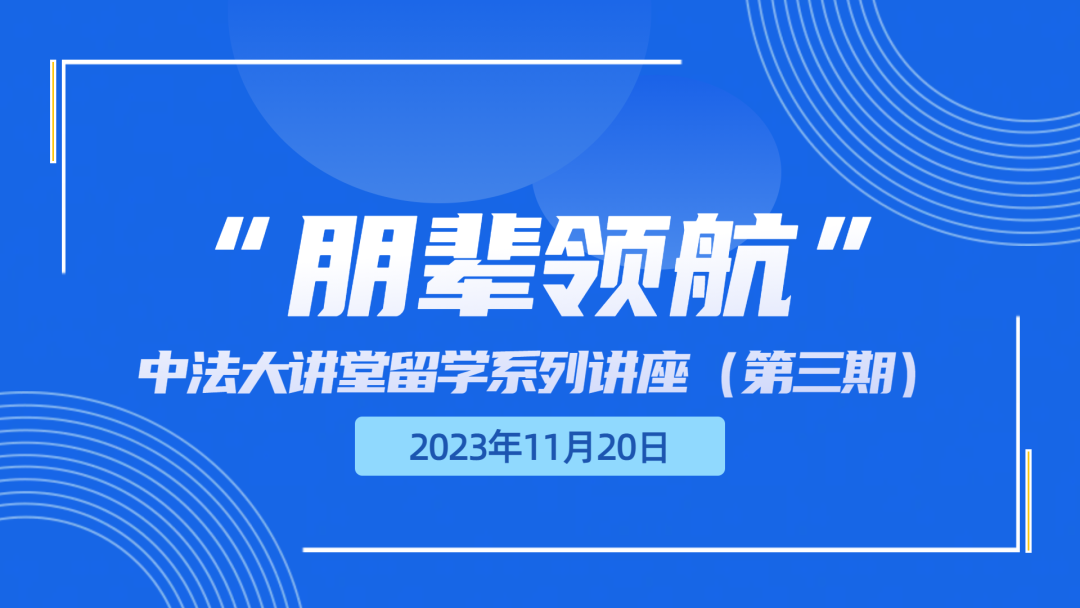 为落实学校关于榜样示范领航工程的有关部署,学院从本学期开设“中法大讲堂”,包括大师讲坛、名师讲坛、校友讲坛、朋辈讲坛等多个系列。其中朋辈领航系列讲座将邀请出国深造的优秀学生进行留学经验分享,帮助有意愿在未来赴境外攻读研究生的同学了解海外学习的基本情况。针对同学们关心的留学相关问题,学院后续将邀请不同国家地区的顶尖高校就读同学进行分享,答疑解惑,希望更多同学参与到讲座中来!