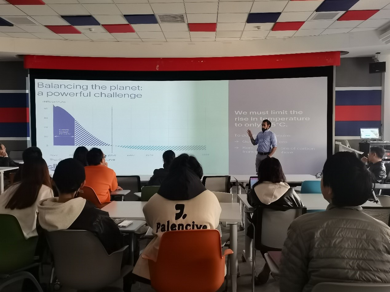 该论坛由两个环节构成:企业工程师分享和学生现场互动。首先,来自斯伦贝谢的Badreldin Mostafa工程师结合多年来在斯伦贝谢的工作经历分享了他作为国际公司的工程师,在不同国家的不同岗位上与不同文化背景的团队的交流故事,分享了在跨文化团队工作中的具体案例,表示跨文化交流虽然充满挑战,但也充满乐趣。